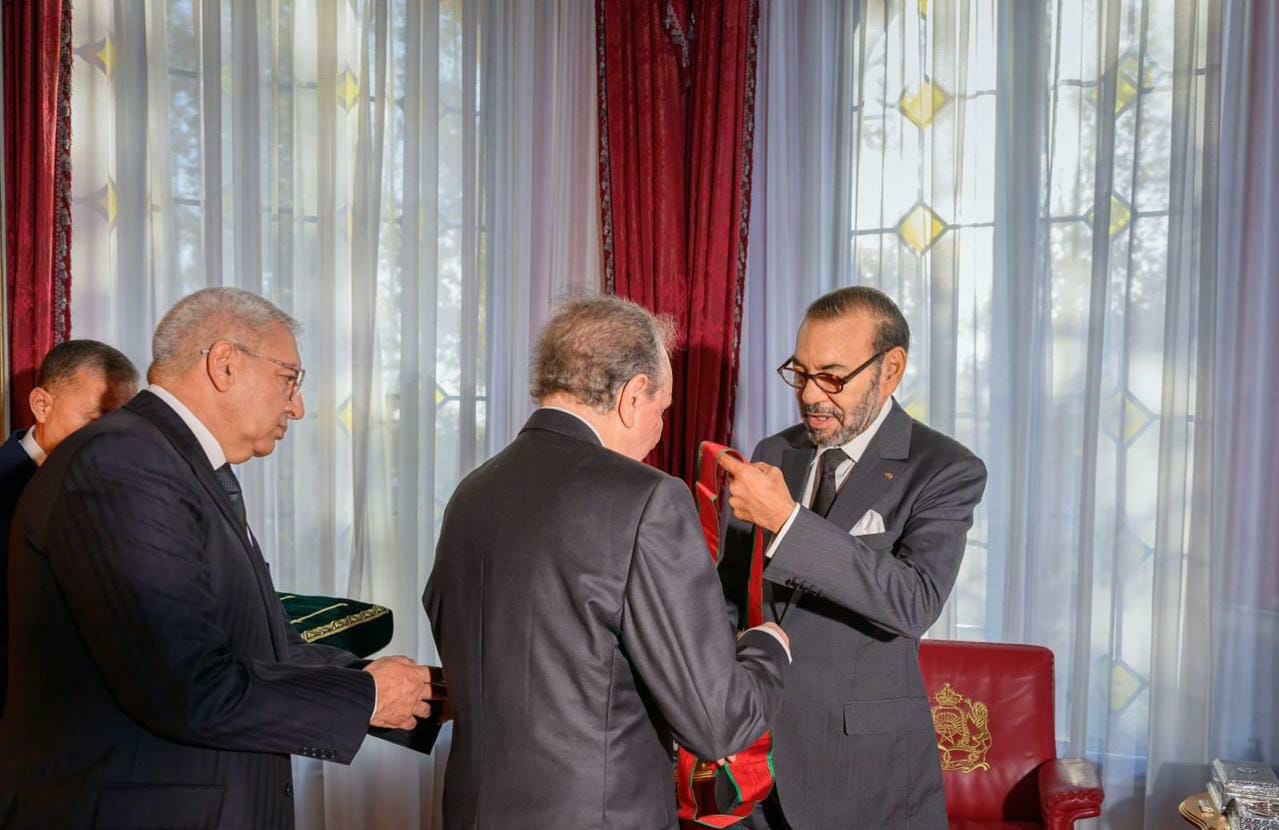 كما استقبل جلالته، أعزه الله، السيد أحمد لحليمي علمي، المندوب السامي للتخطيط سابقا، ووشحه جلالته بالحمالة الكبرى لوسام العرش”.