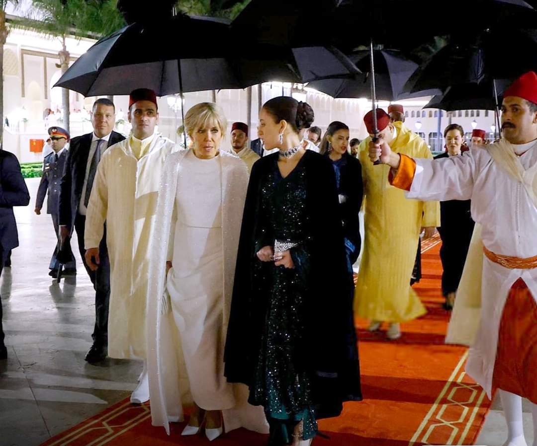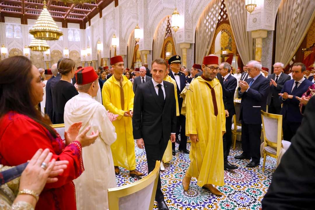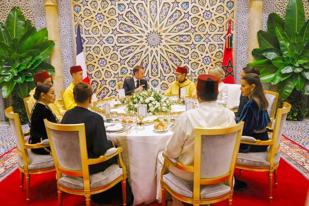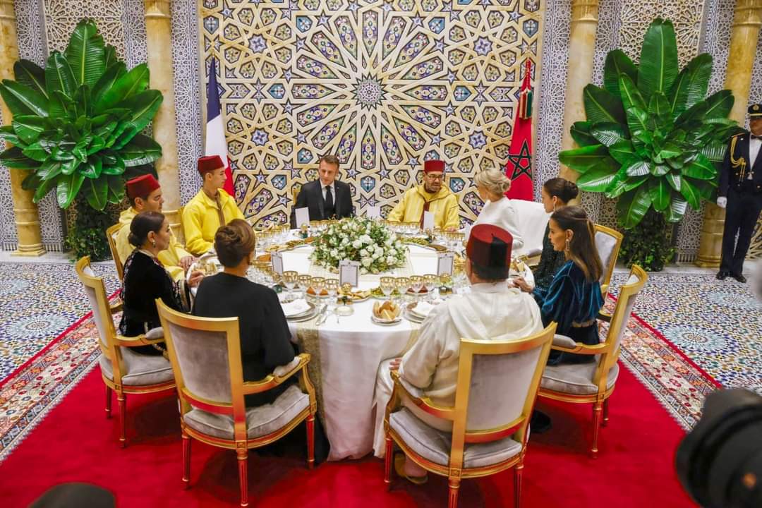 أقام الملك محمد السادس مرفوقا بولي العهد الأمير مولاي الحسن، والأمير مولاي رشيد، والأميرات للا خديجة وللامريم وللا أسماء وللا حسناء، اليوم الثلاثاء بالقصر الملكي بالرباط، مأدبة عشاء رسمية على شرف رئيس الجمهورية الفرنسية إيمانويل ماكرون وحرمه بريجيت ماكرون.