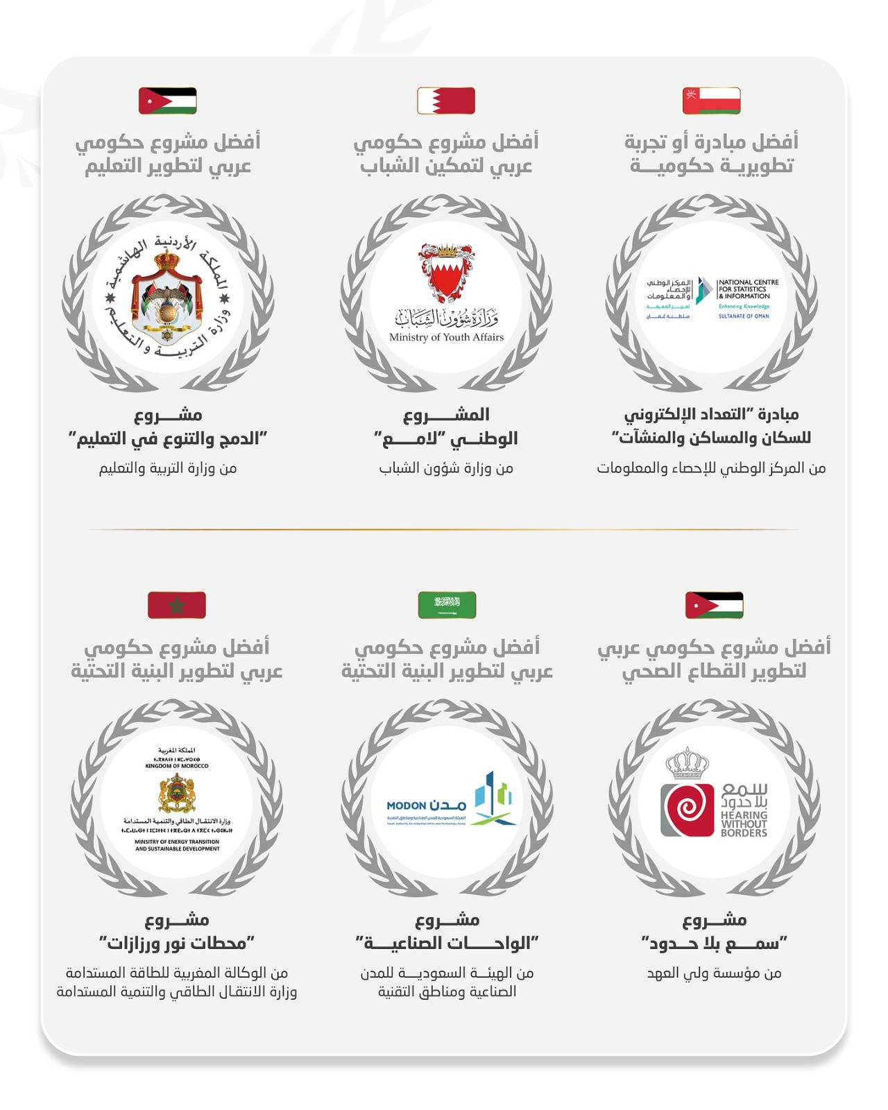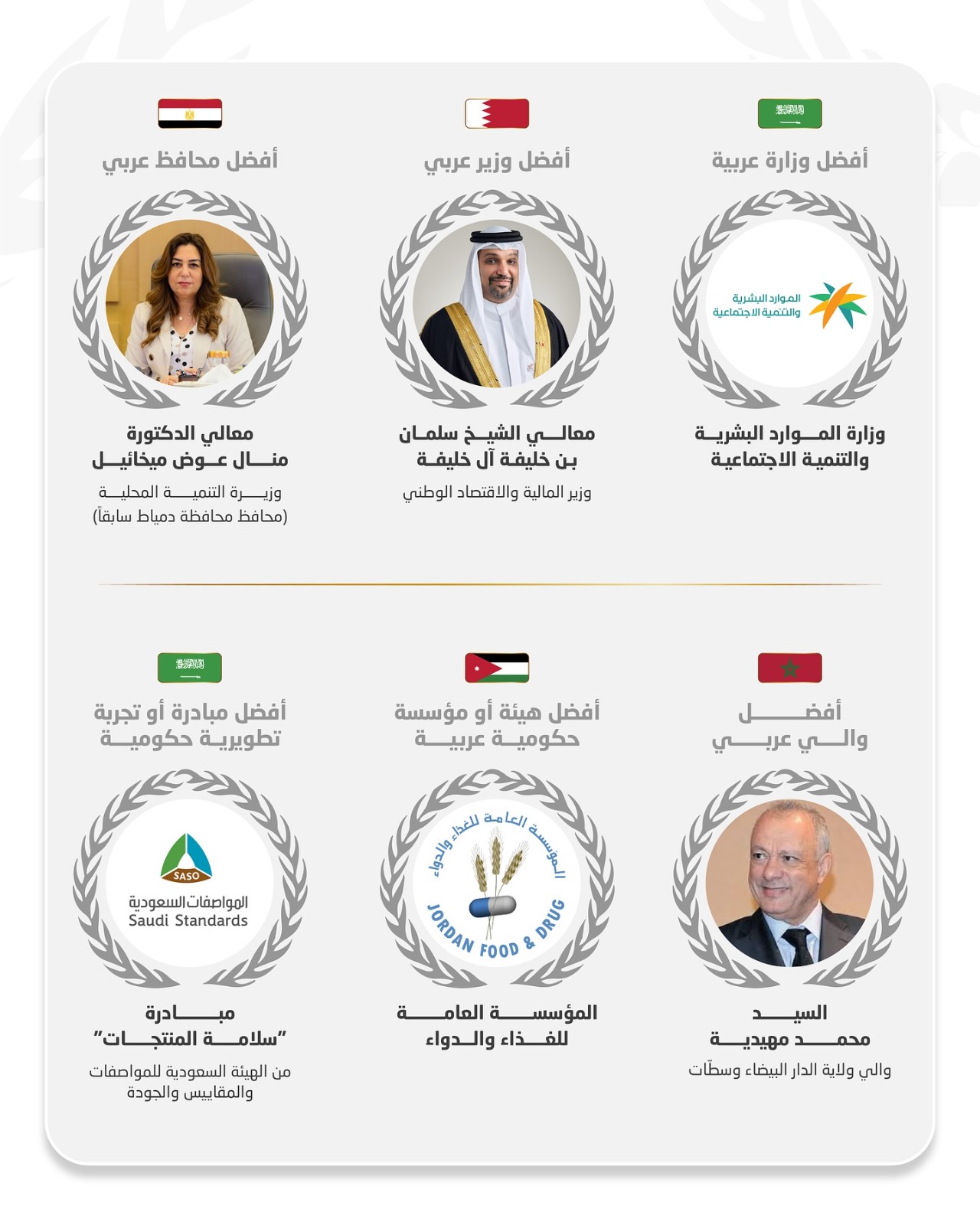 وارتباطا بما جرى ذكره، تمكن المغرب من انتزاع جائزتين مهمتين ضمن مجموع جوائز النسخة الثالثة المتبارى عنها، الأولى كانت من نصيب المهندس "محمد مهيدية"، والي جهة الدار البيضاء-سطات، بعد أن تم تتويجه بجائزة أفضل والي على صعيد الوطن العربي، في وقت فازت محطة "نور ورزازات" للطاقة الشمسية بجائزة التميز الحكومي العربي، كأفضل مشروع لتطوير البنية التحتية بالعالم العربي، مناصفة مع مشروع الواحات الصناعية للهيئة السعودية للمدن الصناعية ومناطق التقنية بالمملكة العربية السعودية.