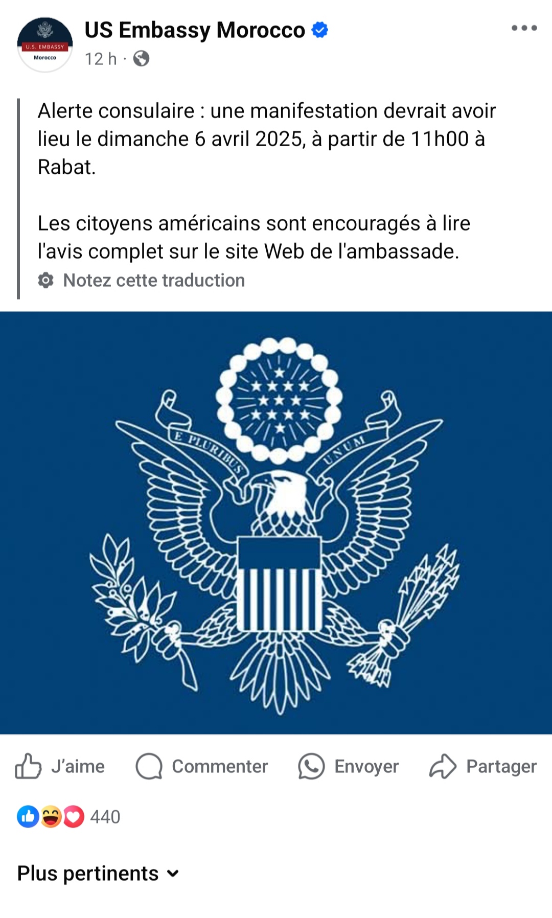 وحذرت القنصلية من احتمال حدوث اضطرابات مرورية بسبب إغلاق بعض المحاور الطرقية وسط العاصمة، مذكّرة مواطنيها بأن الأفضل هو "الابتعاد عن المشاكل"، وكأن التضامن مع قضية عادلة بات من الأمور المقلقة في أعين الدبلوماسية الأمريكية.