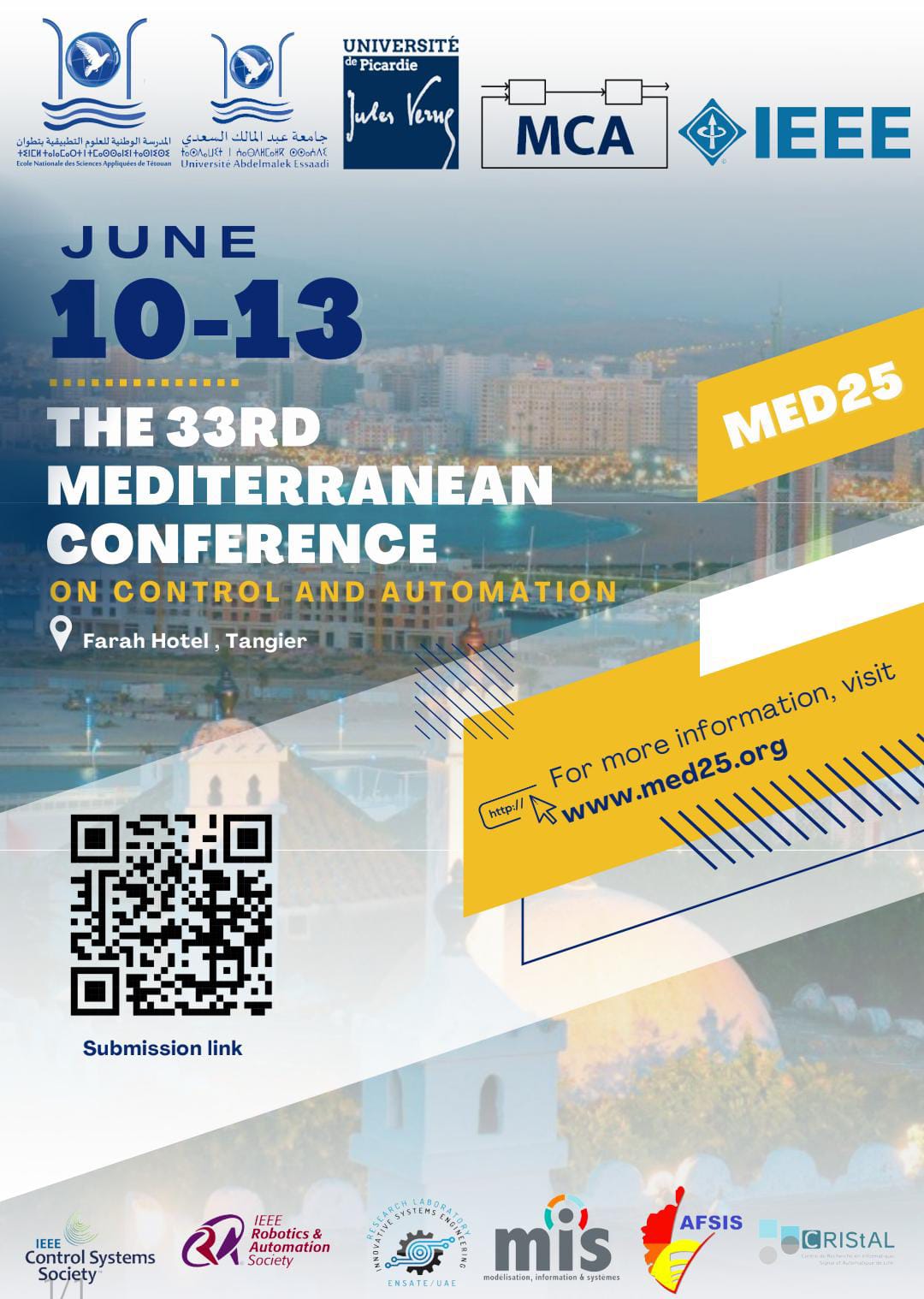 تستعد مدينة طنجة لاحتضان النسخة الثالثة والثلاثين من المؤتمر الدولي Mediterranean Control and Automation (MED’25)، وذلك خلال الفترة الممتدة من 10 إلى 13 يونيو 2025، بفندق فرح، في تظاهرة علمية تستقطب نخبة من الباحثين والخبراء في مجالات التكنولوجيا والابتكار من مختلف بقاع العالم.