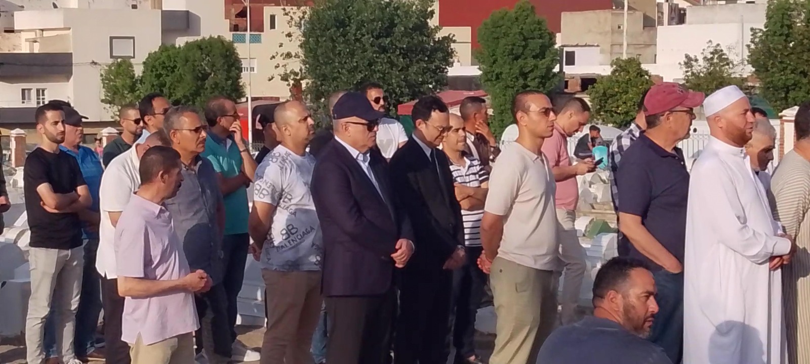 وظهر الوزير، الذي بدت عليه علامات التأثر العميق، وهو يرتدي كمامة طبية، دون أن يشارك في صلاة الجنازة التي أمّها رئيس المجلس العلمي المحلي، محمد الشنتوف، فيما تولّى أشقاؤه مرافقة الجثمان إلى مثواه الأخير.