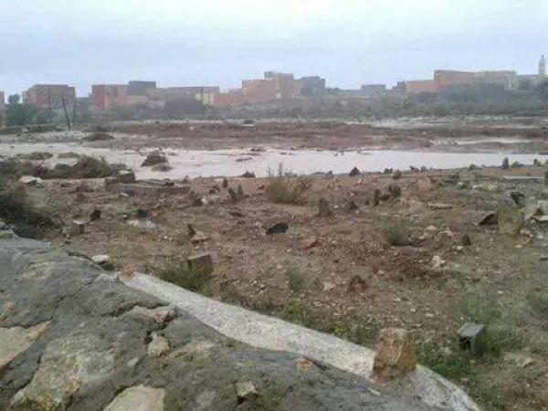 و أضافت ذات المصادر، أن السيول التي داهمت المكان أدت الى تناثر الهياكل البشرية والثوابيت ببعض أجزاء الدوار في مشاهد رهيبة تنذر بكارثة صحية.