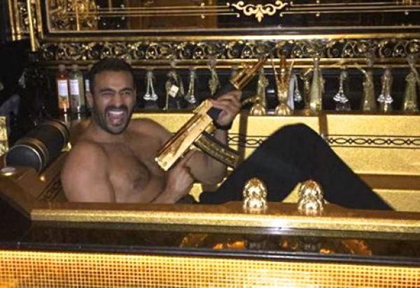 و نشر هاري عدة صور على حسابه في موقع التواصل الاجتماعي "إنستغرام"، حيث ظهر في احداها سعيدا داخل حمام يغطيه الذهب و يحمل سلاح رشاش مرصع بالذهب.