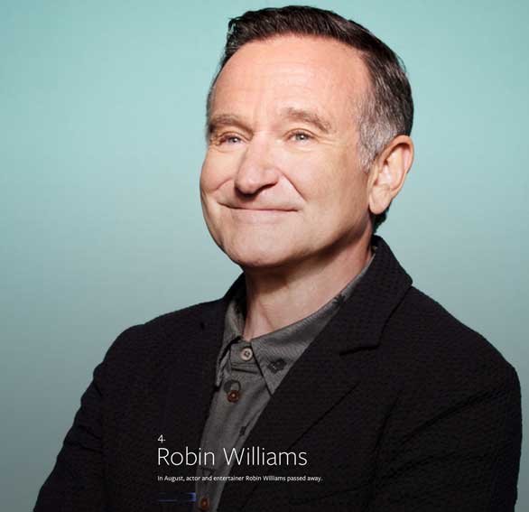 في أغسطس (آب) الماضي، فقدت السينما العالمية أسطورة الكوميديا المتألق الفنان الأمريكي "روبن ويليامز" عقب وفاته في ظروف تشير إلى الانتحار، بعدما قدم ما يزيد على مدى 40 عاماً أدواراً سينمائية مضحكة تارة ومثيرة للدموع والبكاء تارة أخرى.