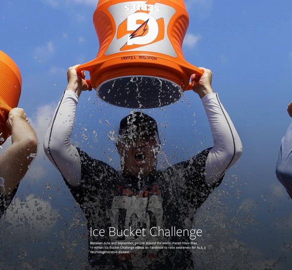 غزت هذه المبادرة كافة وسائل التواصل الاجتماعي، وهي تهدف إلى التبرع لصالح مؤسسة بحثية طبية متخصصة لعلاج مرض التصلب الجانبي الضموري. انضم لهذه الظاهرة التي انتشرت بسرعة بالصاروخ العديد من المشاهير والنجوم في كافة المجالات.