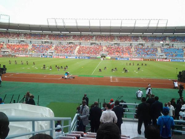 على الأقل الملعب ليس مزرعة أرز كما حصل في المندياليتوا اذا كان المغرب وفي مدة سنتين ولم يستطع وتنصل بحجج واهية لا احد يستطيع التحضير الجيد لهذه الدورة في مدة ثلاث اشهر المهم الدورة افتتحت في وقتها ولا عزاء للحسادين والحاقدين والذي ستألمون طوال هذه الدورة وكل امانيهم ان تفشل ولن تفشل بإذن الله وسيتبارى عمالقة القارة الإفريقية وسيخرج اقواهم بالكأس الإفريقية فاصمتوا فنحن نستمتع وليس لنا الوقت للتفاهات