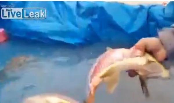 وأظهرت سمكة مقاومة للموت وتشبثاً غير عادي بالحياة، بعد شق بطنها ونزع أحشائها بالكامل بما فيها الأعضاء المرتبطة بالعمليات الحيوية للجسم.
