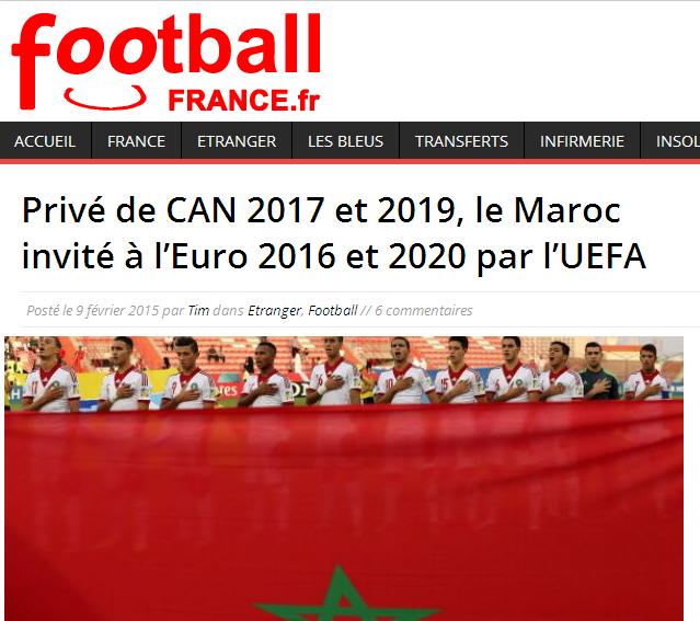 موقف حرج إستدعى تدخل رئيس الاتحاد الأوروبي لكرة القدم "ميشيل بلاتيني" الذي فاجأ الجميع بدعوة المغرب للمشاركة في كأس الامم الاوروبية 2016 و كذا نسخة 2020. معلنا تأثره بالعقوبات المجحفة التي تم فرضها حيث قال : "قررت مساعدة دولة صديقة تم معاقبتها بشكل غير عادل..."