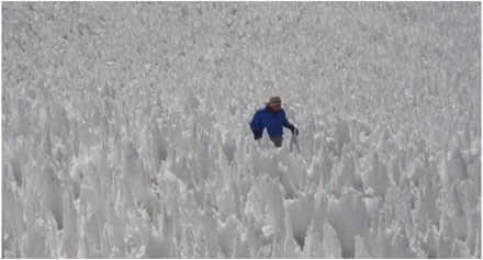 وهي شائعة الحدوث في جبال الإنديز الجافة، على ارتفاع شاهق يصل إلى 4000 متر، وتختلف تلك التشكيلات في حجمها، إذ يتراوح طولها ما بين بضعة سنتيمترات، إلى خمسة أمتار.