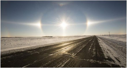 تحدث هذه الظاهرة و المعروفة علميًا باسم “parhelia”، نتيجة وقوع ضوء الشمس على سحب تحوي كتلا ثلجية، تقوم بدور المنشور الزجاجي الذي يعيد توزيع ضوء الشمس بشكل دائري، فتنتج هالة بيضاء حول الشمس.