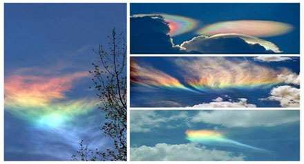 وهي ظاهرة شائعة الحدوث في الولايات المتحدة الأمريكية، خلال فصل الصيف، ولا يصاحبها نيران، كما لا يرتبط حدوثها بقوس قزح الذي يظهر في الشتاء، لكنها تحدث بالصدفة عندما يتساوى خط آشعة الشمس مع توزيع الكتل الثلجية للسحب، حيث تلعب تلك الكتل دور المنشور الزجاجي، وتحلل الضوء إلى ألوان مثل قوس قزح، كما تتخذ شكل اللهيب.
