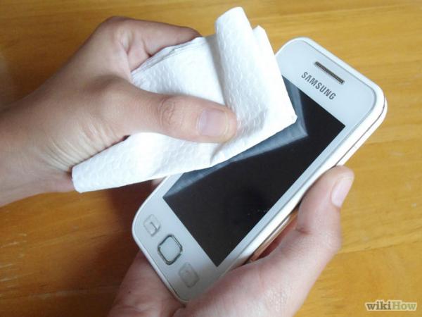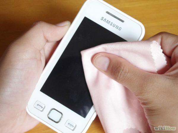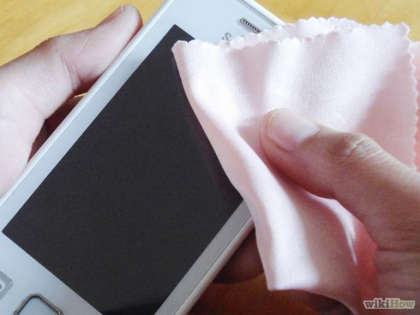 بعد ذلك يتم إيقاف الجهاز قبل بدء التنظيف، ثم دعكه بلطف أكثر من مرة على شكل دوائر صغيرة، وإذا لزم الأمر تبلل قطعة من القماش أو القطن أو حتى طرف القميص القطني ثم يتم الفرك في حركات دائرية صغيرة.