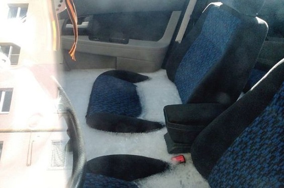 وبحسب موقع ميرور البريطاني فإن الجليد غطى العجلات وكسا مقاعد السيارة الداخلية عقب تسرب المياه داخل السيارة وتحولها إلى جليد بسبب انخفاض درجات الحرارة لأقل من 30 درجة سيلزيوس تحت الصفر.