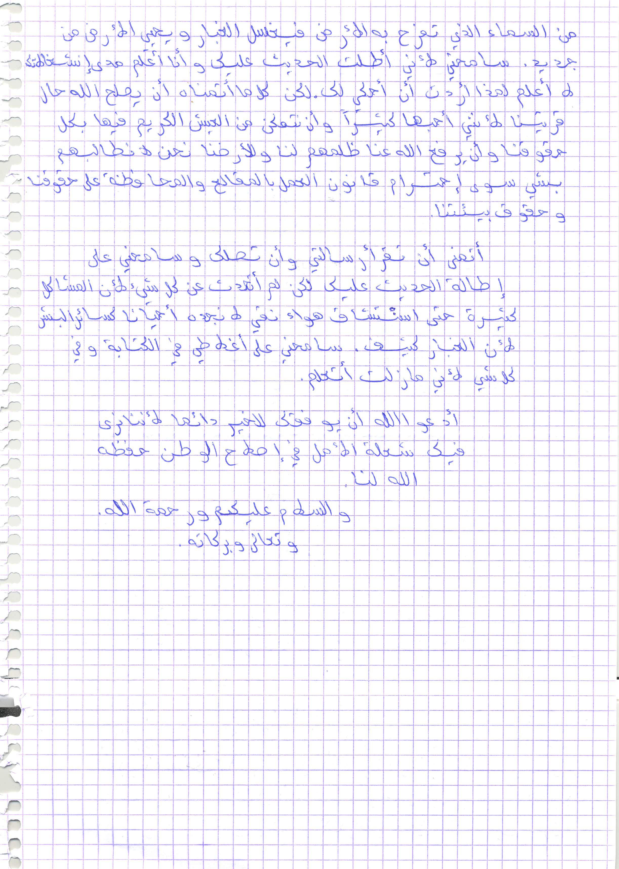 لتختم بأدبها العفوي البعيد عن كل بروتوكول مصطنع في مواجهة رئيس الحكومة: "سامحني على أغلاطي في الكتابة وفي كل شيء لأني ما زلت أتعلم"،  دون أن تنسى "أتمنى أن تقرأ رسالتي وأن تصلك، وسامحني على إطالة الحديث عليك، لكن لم أتحدث عن كل شيء لأن المشاكل كثيرة..." وصدقت هاجر فالمشاكل كثيرة.