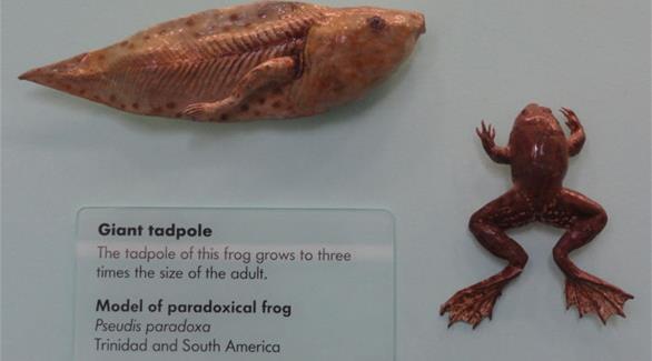 وعندما اكتشف العلماء ضفدع "بسيوديس بارادوكسا" للمرة الاولى في البراري بأمريكا الجنوبية اختلطت عليهم الأمور، وظنوا في البداية أن الضفادع البالغة صغيرة الحجم هي الصغار، وتبين فيما بعد أن هذه الحيوانات ما هي إلا ضفادع بالغة انكمشت خلال فترة نموها.