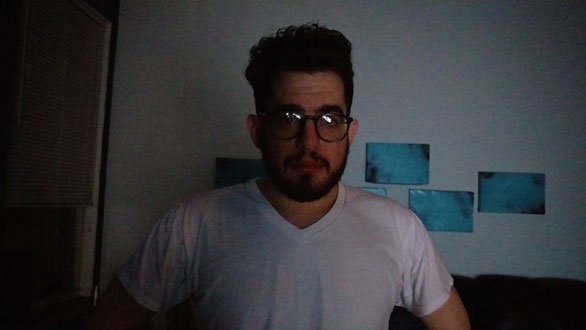 كاميرا هاتف "وان إم 9" ضعيفة جداً في الظروف ذاتها، فالصورة مظلمة ومعتمة وغير واضحة، فنصف الوجه مظلم.