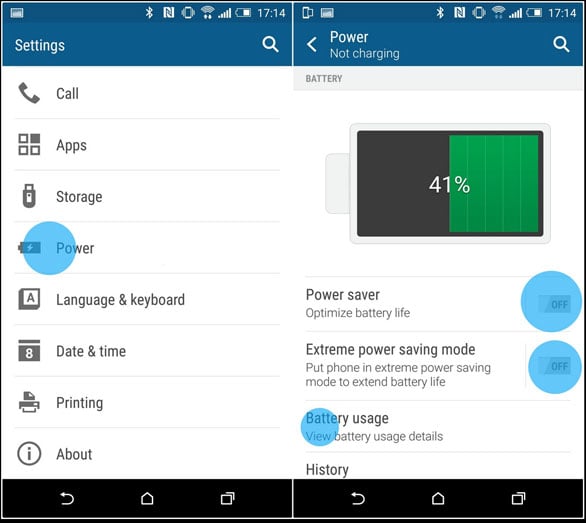 بعض التطبيقات تأكل البطارية أكثر من غيرها، وينصح بطريقتين إما بتحميل تطبيق "Greenify" لإغلاق التطبيقات العاملة في الخلفية في حالة عدم استخدامها وإدخالها في وضعية الثبات لحين تشغيلها مرة أخرى، لتوفير البطارية. والطريقة الثانية تتمثل في الذهاب إلى "اعدادات" ثم "طاقة" ثم النقر على "استخدامات البطارية"، وهنا سيعلم المستخدم أي التطبيقات استهلاكاً للبطارية والضروري حذفها.