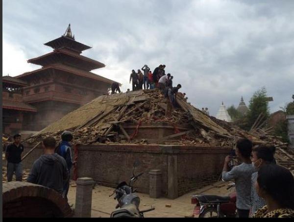 ووفقاً لـ "بيزنس إنسايدر"، تسبب الزلزال أيضاً بوقوع انهيارات في المباني في العاصمة وانزلاقات أرضية وانهيارات جليدية في جبل إيفرست كما دمر مباني ومواقع أثرية، وتسبب بانهيار برج دارهرا التاريخي في كاتماندو.