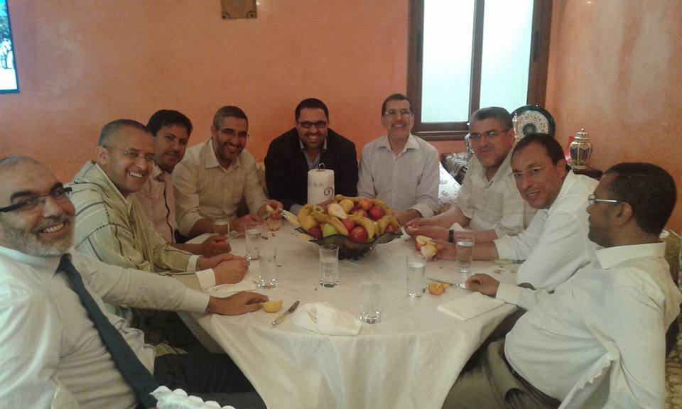 و كتب الادريسي :"بعد لقاء مطول للامانة العامة لحزب العدالة والتنمة ساده جو من المسؤولية والوضوح والاخوة...حتى وهو يتخذ قراراته الكبيرة...زيارة وغذاء الى بيت الاخ الشوباني ثم قهوة وشاي في بيت الاخت سمية بنخلدون(تجلس بين شقيقيها).