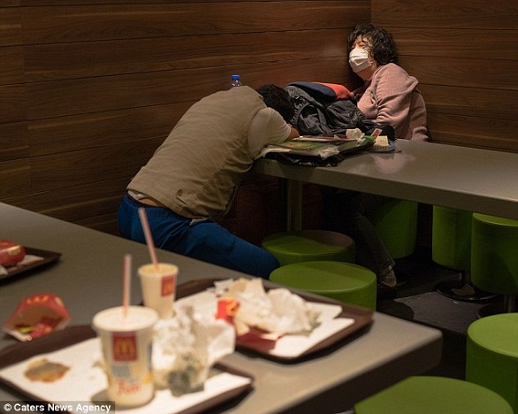 وأظهرت الصور التي التقطها المصور المحلي سوراج كاترا مجموعة من المشردين ينامون داخل فروع مادونالدز البالغ عددها 235 فرعاً في هونغ كونغ التي تعد العقارات السكنية فيها من الأغلى في العالم.
