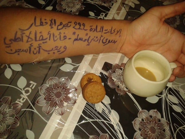 نشرت صفحة "مجلة أقليات" بموقع التواصل الاجتماعي "الفاسبوك" ، و هي الصفحة التابعة لحركة "ماصايمينش" أمس الخميس، صورة لأحد نشطائها يقوم بالافطار العلني في أول أيام رمضان.