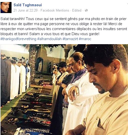 تقاسم الممثل العالمي من أصل مغربي سعيد تغماوي، صورة له يؤدي صلاة التراويح خلال شهر رمضان ، مع معجبيه بصفحته الرسمية على الفايسبوك.