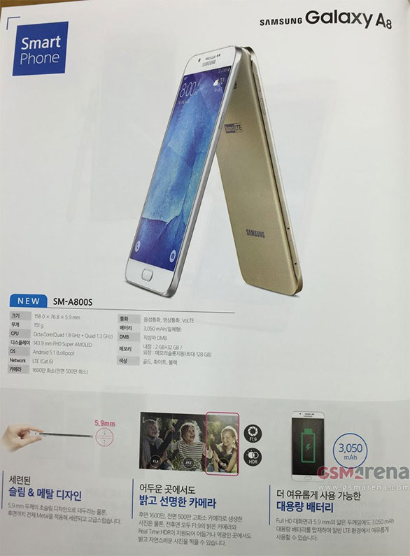 وسيدعم الهاتف شبكات الجيل الرابع "إل تي إي" وسيكون الهاتف عند إطلاقه أنحف هاتف ذكي لدى سامسونغ، حيث أن سمكه يبلغ 5.9 ملم، سيعمل بنظام أندرويد إصدار 5.1.1، مع واجهة سامسونج الخاصة "تاتش ويز"، ولا يكشف المنشور الترويجي عن أي معلومات بخصوص موعد الإعلان عن الهاتف أو سعر الهاتف عند إطلاقه في الأسواق.
