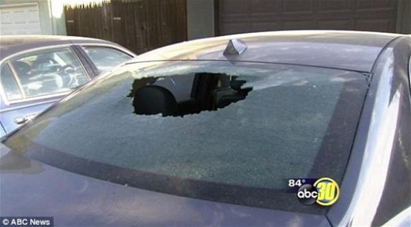 وأضافت ساندرس في حديث لشبكة أي بي سي 30 الإخبارية: "أسرعت بالخروج من المنزل لمعرفة ما حصل، وعندما نظرت إلى سيارتي وجدت حفرة في زجاجها الخلفي".