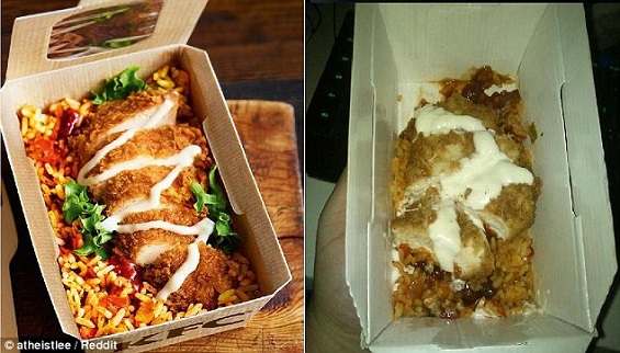 واعترض المستخدمون ليس على الاختلاف في شكل الوجبة فحسب، بل اشتكوا أيضاً من حجم الوجبة الحقيقية وطعمها ومذاقها غير المحبب، فقال أحد المستخدمين إن وجبات "الدجاج بالأرز" من سلسلة الوجبات السريعة العالمية "كنتاكي" تأتي صغيرة مقارنة بالصورة والدجاج صعب المضغ والأرز بارد غير ناضج، بحسب صحيفة دايلي ميل البريطانية.