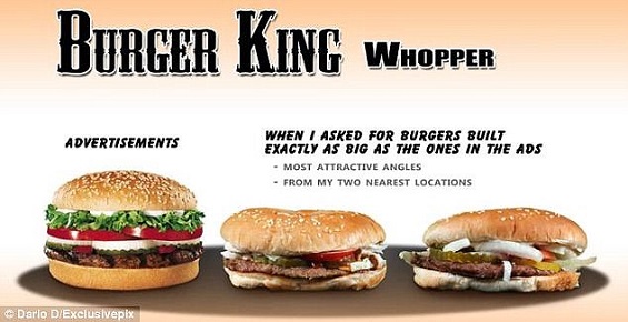كما عبر بعض المستخدمين عن عدم رضاهم واستيائهم من حجم السندويتشات التي تقدمها سلسلة مطاعم "ماكدونالدز" للزبائن في الواقع مقارنة بنظيرتها "المنمقة" التي تظهر في الإعلانات، من ناحية الشكل وطريقة التقديم بجانب الحجم والطعم.