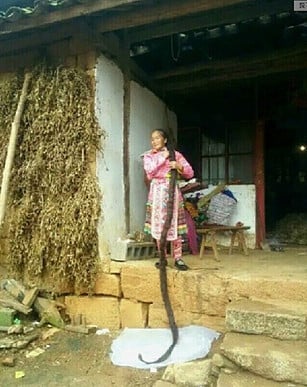 واهتمت وسائل الإعلام الصينية بنشر صور تلك المرأة، وظهرت فى تليفزيون الصين المركزي بشعرها المجدول فى ضفيرة طويلة تبلغ أكثر من ضعف طولها، وتقوم بلف ضفيرتها خمس مرات كحزام حول خصرها لتستطيع القيام بعملها فى الحقل.