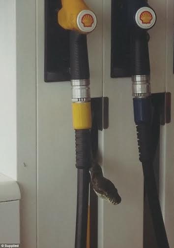 ونقلت صحيفة "سبق" عن "الديلي ميل"، إن الأسترالي ادزي هايست توقف بسيارته في محطة تموين السيارات بالقرب من مطار سيدني، وفي اللحظة التي مد فيها عامل المحطة ليمسك بخرطوم البنزين، خرج ثعبان من المضخة.