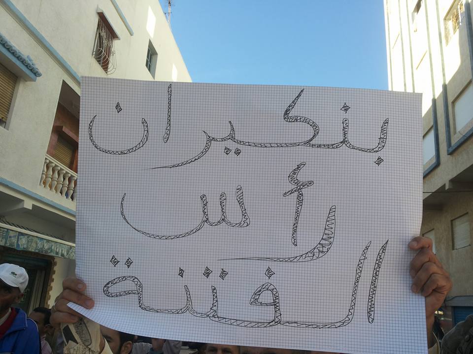 و من بين أبرز اللافتات هي التي كانت تعبر عن رفض المواطنين تصريحات بنكيران الأخيرة، التي وصف فيها احتجاجات ساكنة طنجة بالفتنة، حيث وصفته لافتة مرفوعة على أنه هو "رأس الفتنة".