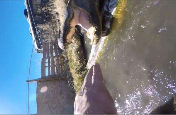 ويظهر الفيديو الذي صوره العامل بكاميرا مثبتة على ذراعه، إقدام هذا الرجل المغامر على إدخال يده في فم التمساح وإخراجها بحركة سريعة قبل أن يطبق هذا الحيوان المفترس فكيه عليها.