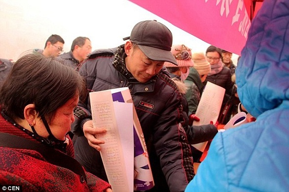 ووصل الراغبون بالحصول على تقويم العام الجديد الذي يحمل اسم عام القرد في الصين عند الساعة 7.00 صباحاً بالتوقيت المحلي، وشكلوا طابورين طويلين أمام الأكشاك التي كانت توزع التقويم.