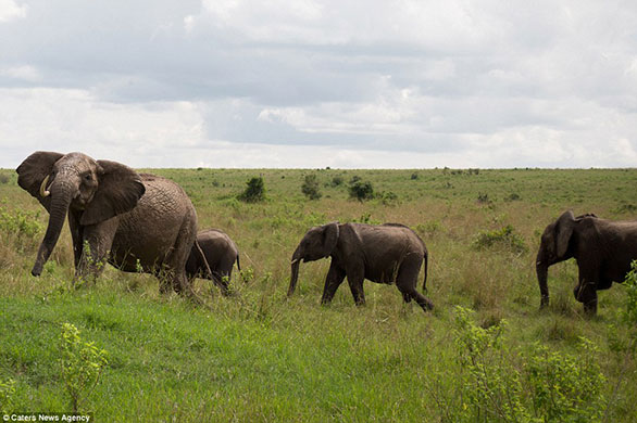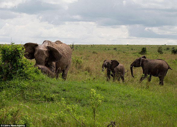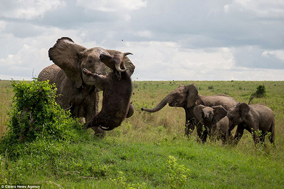 ويظهر في الصور التي نشرتها صحيفة دايلي ميل البريطانية لحظات هجوم أنثى الفيل على جاموس وغرزت نابها فيه، ثم رفعته بالهواء وهزّته وبعد ذلك رمته على الأرض، وغادرت.