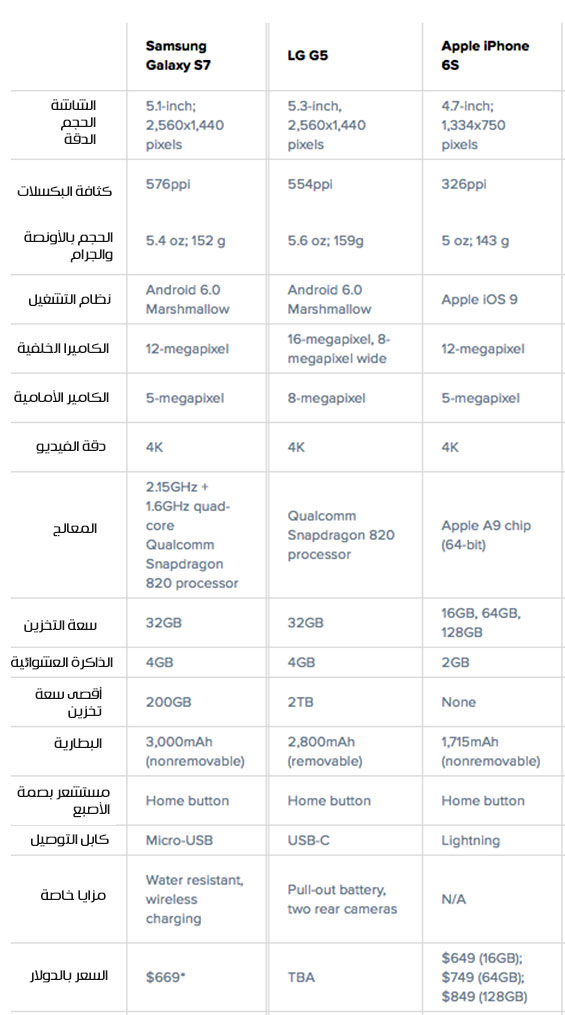 للإجابة على السؤال، نستعرض مقارنة تفصيلية بين الهواتف الثلاثة "غالاكسي إس 7" و"إل جي جي 5" و"آي فون 6 إس"، بحسب موقع "فون آرينا".