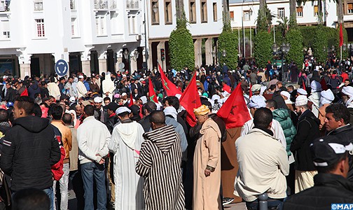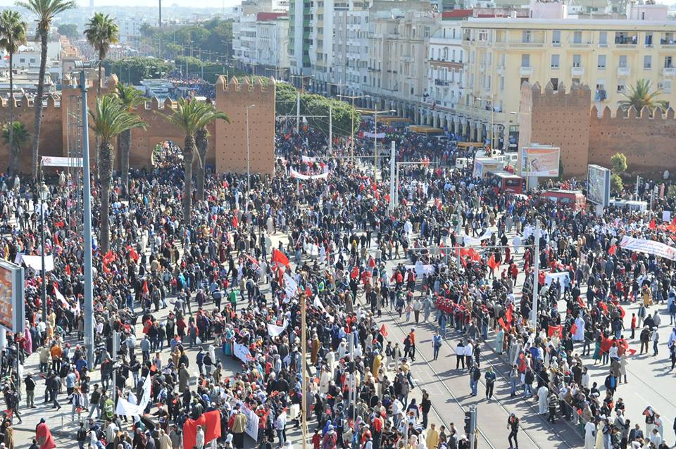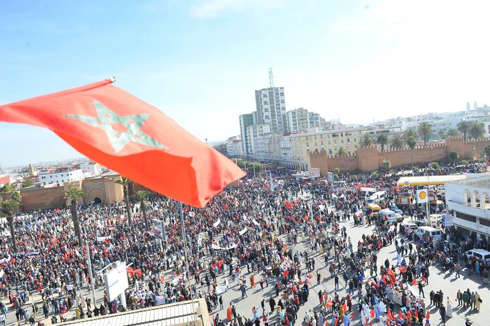 وقدم المتظاهرون من كافة أنحاء المملكة، للمشاركة في هذه المسيرة الشعبية والوطنية، حيث شكلوا أمواجا بشرية غمرت الشوارع الرئيسية لوسط مدينة الرباط.