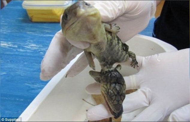 وأفادت الأسترالية جو إلى أنها عثرت على هذه السحلية في وضع مزر وتعجز عن المشي وسارعت بها إلى الطبيب البيطري لمعالجتها لكن الوقت كان متأخراً بعد سبع ساعات من ولادتها.