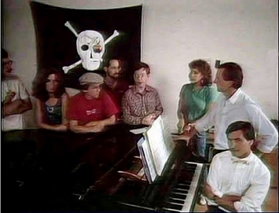 وأدناه، تجدون صورة ملتقطة للمؤسس الراحل لأبل جوبز مع فريق ماكنتوش وعلم القراصنة.
