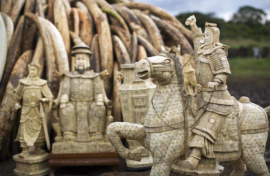 وتقدر قيمة العاج المحروق الذي اشتمل على تماثيل من العاج صادرتها السلطات الكينية بحوالي 150 مليون دولار.