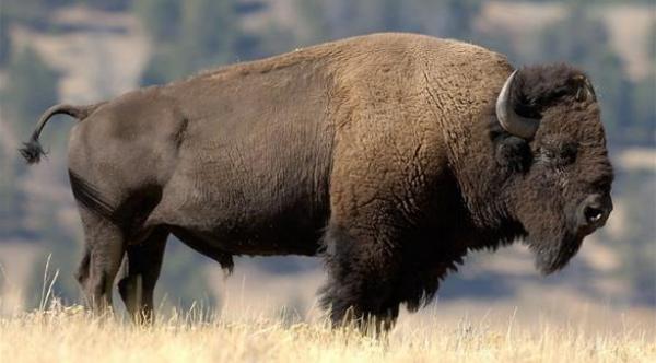 ويُصنف البيسون على أنه أكبر حيوان ثديي بري على قيد الحياة في أمريكا الشمالية حيث يصل وزن ذكر هذا الثور الكثيف الوبر ذي السنام إلى 900 كيلوجرام وطوله 1.8 متر.