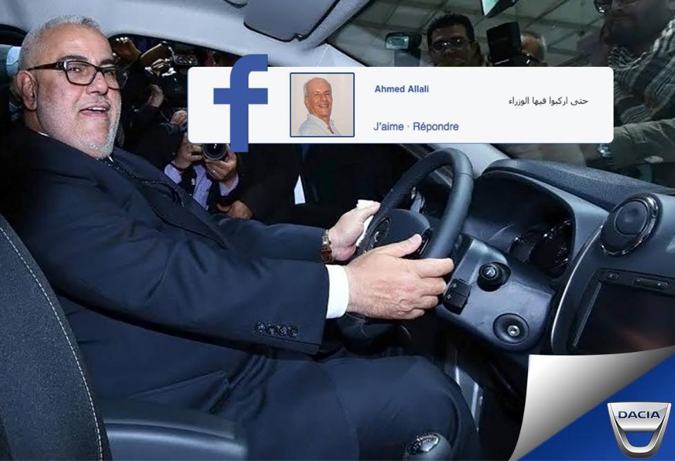 اختارت شركة داسيا المغرب صفحتها الرسمية على موقع التواصل الاجتماعي فايسبوك لترد بطريقة ساخرة على التصريحات المثيرة للجدل التي أطلقها قبل أيام عبد الاله بنكيران والتي قال فيها: هل تريدون أن يركب رجال الأعمال ميرسيدس والوزراء سيارة داسيا.