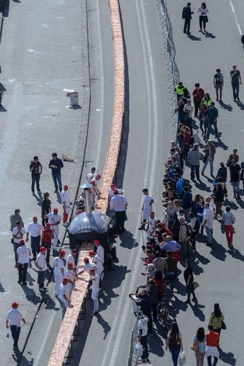 وحضرت ” لوسيا Sinigaglia ” من جينيس للتحقق في تسجيل رقم قياسي جديد بأطول بيترا في العالم، ففي 2015 كان طول أطول بيتزا 1،595.4 متر، وبهذا الرقم استطاع الطهاه دخول ” جينيس ” .