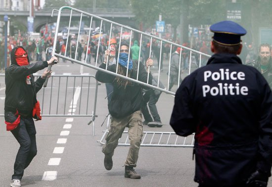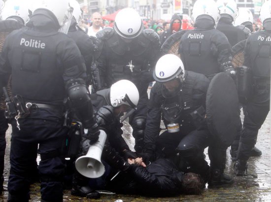 أصيب شرطى بلجيكى على الأقل وعدد من المتظاهرين بعد نشوب اشتباكات الثلاثاء، خلال تظاهرة نظمت وسط العاصمة البلجيكية (بروكسل) للاعتراض على التقشف والسياسات الاقتصادية والاجتماعية للحكومة.
