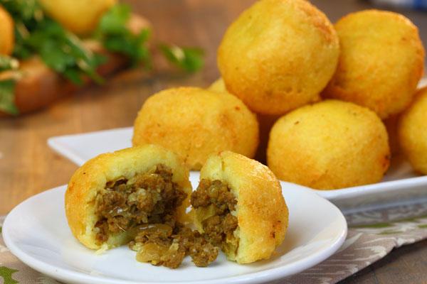 2. تُسلق البطاطا في الماء إلى أن تنضج ثم تُصفّى وتُترك جانباً كي تبرد وتُقشّر وتُهرس ثم تُمزج البطاطا المهروسة مع الملح، والفلفل، والبيض ثم توضع جانباً.