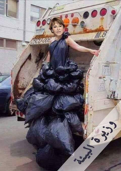 تداول فايسبوكيون صورة ساخرة لحكيمة الحيطي الوزيرة المنتدبة المكلفة بالبيئة على خلفية الضجة التي أثارتها الصفقة الغامضة و المتعلقة بـ"استيراد" 2500 طن من النفايات الإيطالية.