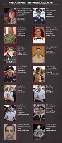 وبدأت عقب المحاولة الانقلابية الفاشلة من قبل عناصر في الجيش التركي، حملة اعتقالات بحق القيادات المتورطة بالتخطيط للانقلاب، شملت المئات من كبار الضباط ومتوسطي الرتب وأعدادا كبيرة من الجنود الذين نفذوا أوامر الانقلاب.