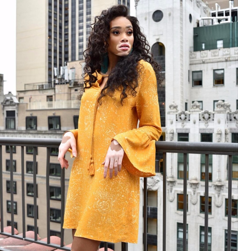 عاشت ويني هارلو طفولة قاسية وغير سهلة منذ إصابتها بمرض البهاق Vitiligo في سن الرابعة ما دفعها إلى تحديه في كبرها وقلب موازين الجمال في عالم الأزياء.